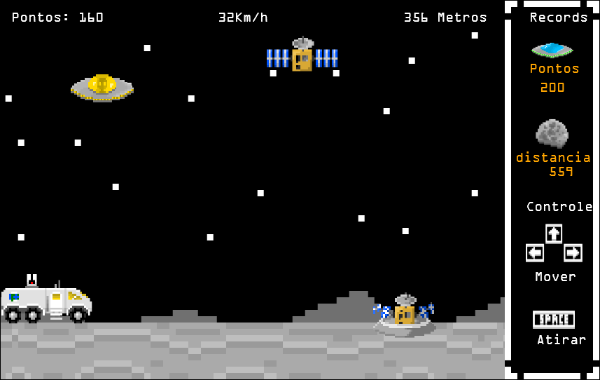 Moon Runner é um jogo de ação estilo endless runner inspirado no clássico jogo do dinossauro do Google, mas com um toque sci-fi. Nele, você controla um carro lunar que percorre a superfície da Lua enquanto desvia de obstáculos e enfrenta naves alienígenas que surgem pelo caminho. Para sobreviver o máximo de tempo possível, o jogador pode usar um canhão laser acoplado ao veículo para destruir inimigos e continuar avançando em um ambiente lunar cada vez mais desafiador.